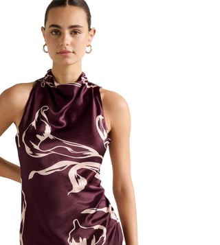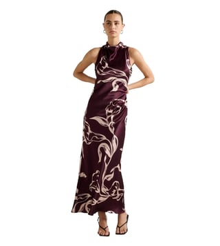 Elevate your wardrobe with the Forever New Michelle Open Back Satin Maxi Dress. This elegant piece features a lustrous satin fabrication, a flattering fit and flare silhouette, and a high cowl neckline. The open back with button fastening adds a touch of allure, while the draped maxi skirt exudes sophistication. Made with sustainably sourced viscose fibre, this dress is not only stylish but also environmentally conscious. Whether you are attending a special event or a night out, this dress is the perfect choice for a timeless and chic look.