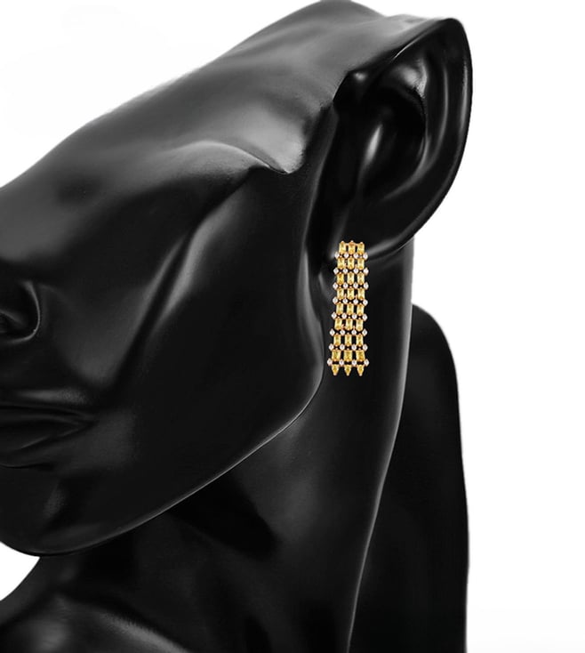 Complete your casual look with these charming Minaki Golden Stalk earrings, designed for fashion-forward women. Perfect for any occasion.' Disclaimer: All other items in the image are only for display purposes and will not be a part of the delivery content. Product colour may slightly vary due to photographic lighting sources. Country of Origin - India.