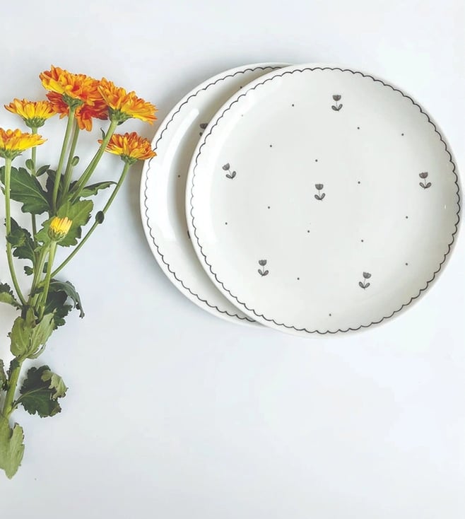 Minimal Indian Black Ditsy Quarter Plate Set of 2