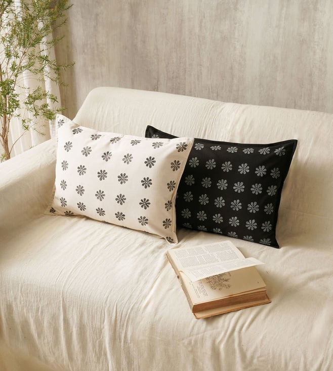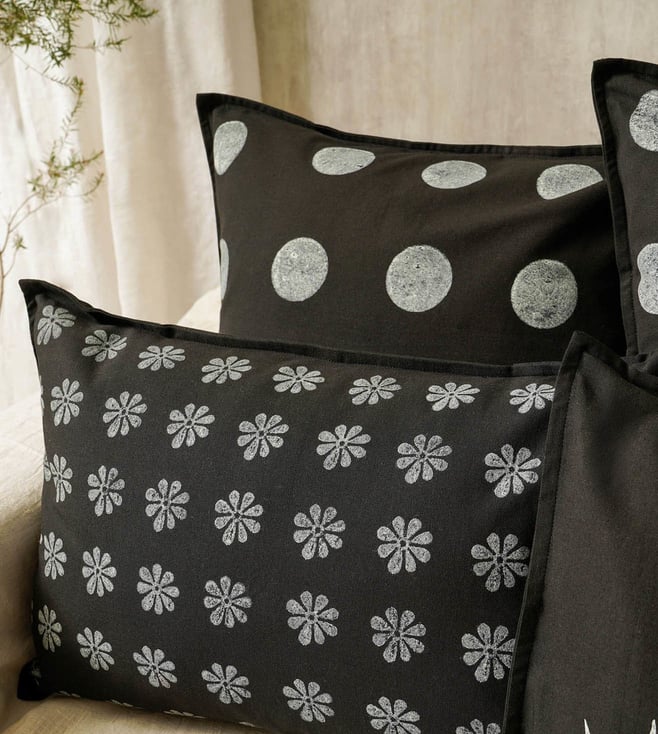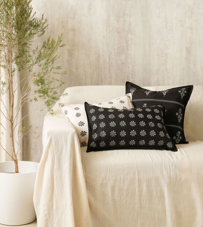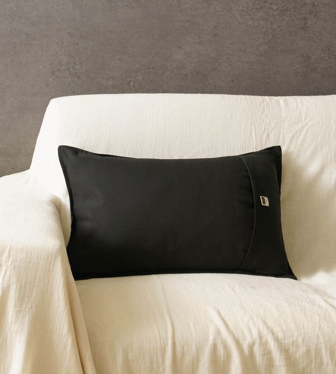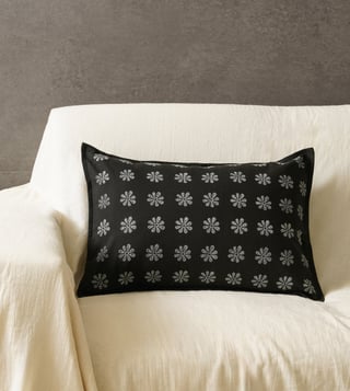 Minimal Indian Tara Lumbar Cushion Cover is the perfect accessory for your home. It is crafted from 100% cotton fabric in a modern black colour, giving any space an instant luxurious upgrade. This stylish cushion cover measures 14x20 inches, to help you add a touch of comfort and charm to any room. With an elegant design. Disclaimer: All other items in the image are only for display purposes and will not be a part of the delivery content. Product colour may slightly vary due to photographic lighting sources. Country of Origin - India.