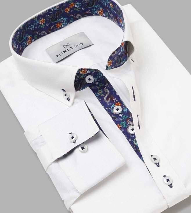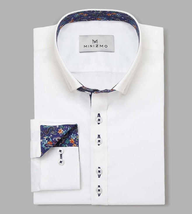 This white cotton shirt from Minizmo has a button-down collar and beautiful daffodil flower print detail under the collar band, placket and cuff area with contrast button holes matching with the print. It has been made from fine cotton that will keep you fresh all day long. Disclaimer: Product colour may slightly vary due to photographic lighting sources. Country Of Origin - India.