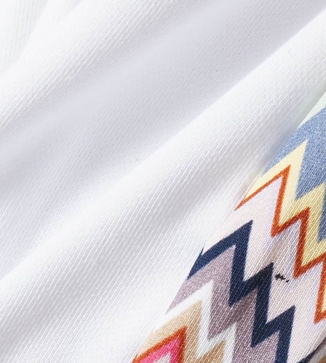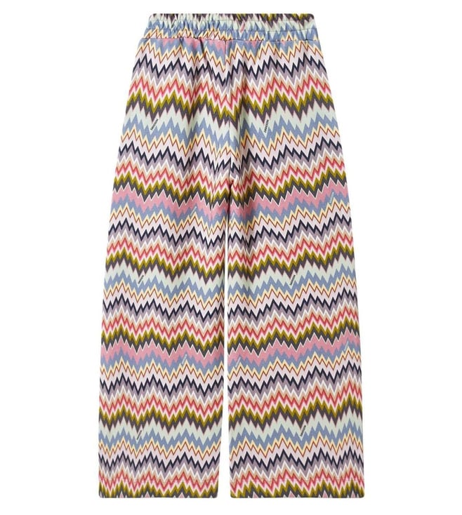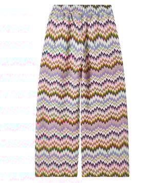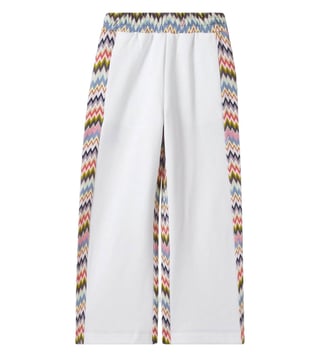 Elevate her style with the Missoni White Comfort Fit Jogger. These wide-leg trousers feature the brands iconic intricate pattern, adding a touch of sophistication to any outfit. The breezy silhouette offers both elegance and comfort, making them perfect for any occasion. Whether shes out for a casual day or a dressed-up event, these joggers are sure to make a statement. Add a chic flair to her wardrobe with these must-have trousers from Missoni.