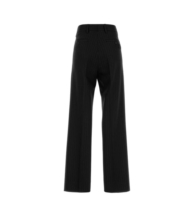 Elevate your wardrobe with the Miu Miu Black Striped Straight Fit Trousers. Designed with zip fly, hook & eye closure, belt loops, pockets, these trousers combine comfort and sophistication for everyday wear. Products purchased from Darveys are supported exclusively by the warranty/exchange policies of Darveys and its partner boutiques. Brand owners and their channel partners are not responsible for exchange/warranty services for items purchased through Darveys.