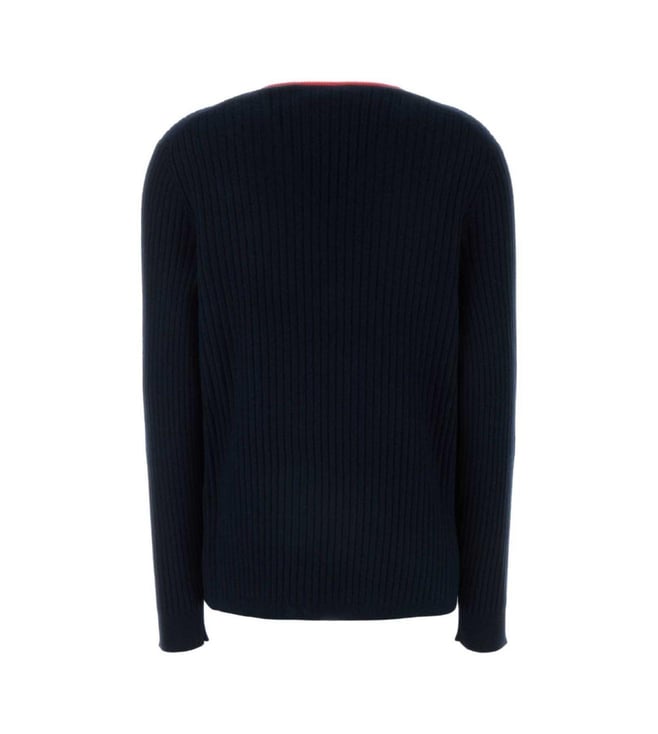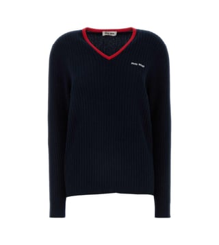Miu Miu Blue Ribbed Wool Woven Design Sweater