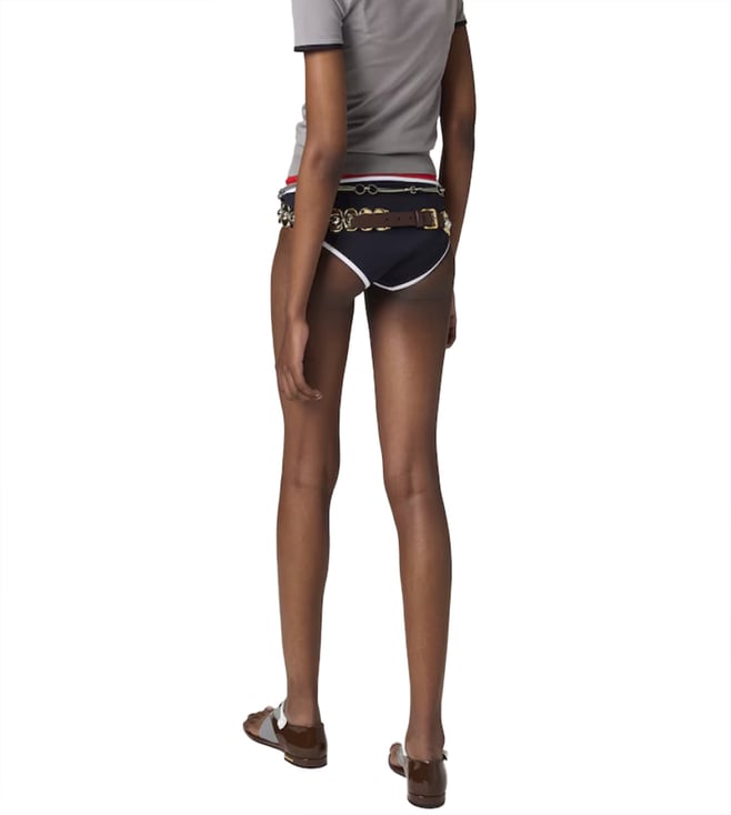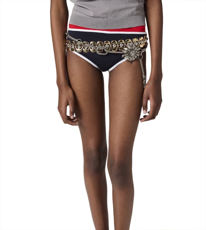 Introducing the Miu Miu Blue Technical-bikini Bottom, a stylish and versatile piece that features Elasticated waistband, contrasting trim, logo patch to the rear. Perfect for adding a touch of elegance to your wardrobe, this piece offers comfort and flair. Ideal for various occasions, it's designed to enhance your unique style with its detailed craftsmanship and modern appeal.