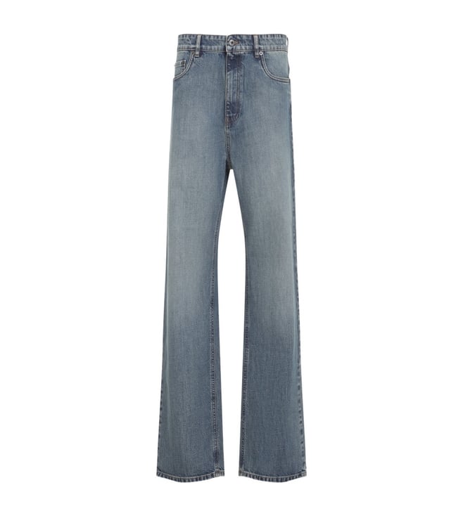 Blue Ribbed Wool Woven Design Sweater