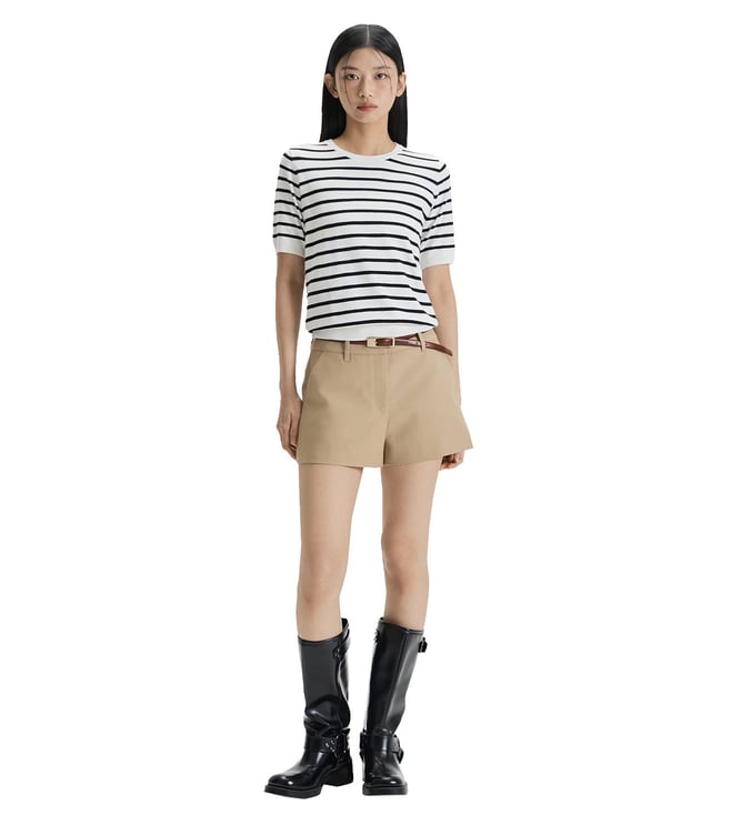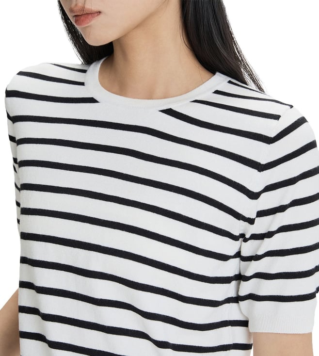 MIXXO Black And White Striped Regular Fit T-Shirt