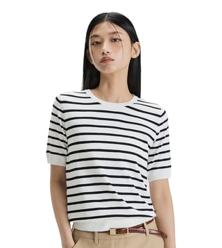 Elevate your everyday style with the MIXXO Black And White Striped Regular Fit T-Shirt. This classic tee effortlessly combines timeless black and white stripes with a comfortable regular fit, perfect for any casual occasion. Crafted from high-quality materials, this t-shirt offers both style and comfort. Whether you're running errands or meeting friends for brunch, this versatile piece will keep you looking effortlessly chic. Upgrade your wardrobe with this must-have essential that will never go out of style.