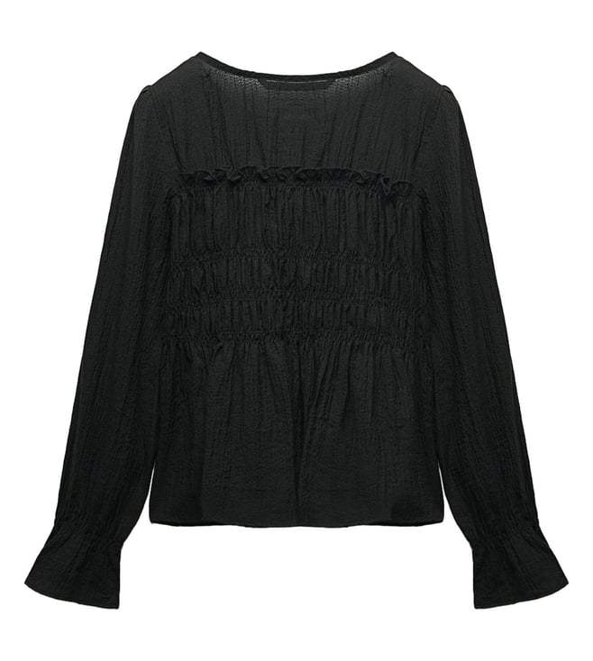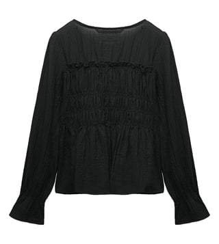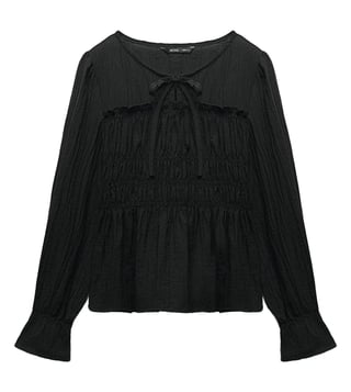 Elevate your wardrobe with the MIXXO Black Regular Fit Smocked Blouse. This versatile piece effortlessly combines style and comfort, featuring a flattering regular fit and trendy smocked detailing. The classic black color makes it easy to pair with any outfit, while the smocked design adds a touch of sophistication. Whether you're heading to the office or a night out, this blouse is sure to make a statement. Upgrade your look with the MIXXO Black Regular Fit Smocked Blouse and stand out from the crowd.