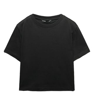 Elevate your everyday style with the MIXXO Black Semi Crop Regular Fit T-Shirt. This versatile piece offers a modern twist on a classic staple, featuring a flattering semi-crop cut and a comfortable regular fit. Crafted from high-quality materials, this t-shirt is perfect for effortless styling and can be dressed up or down to suit any occasion. Whether you're running errands or meeting friends for coffee, this t-shirt will keep you looking chic and feeling confident. Upgrade your wardrobe with this must-have piece from MIXXO.