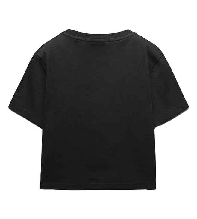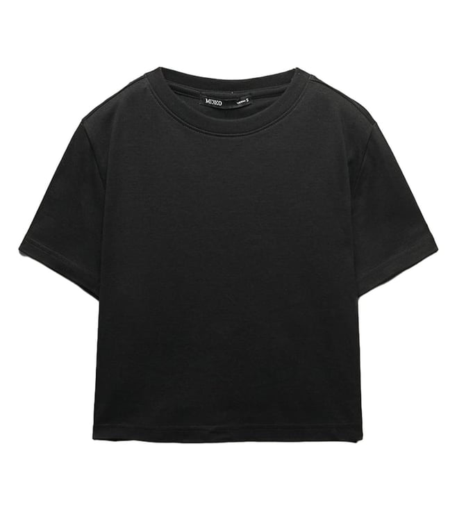 MIXXO Black Semi Crop Regular Fit T-Shirt