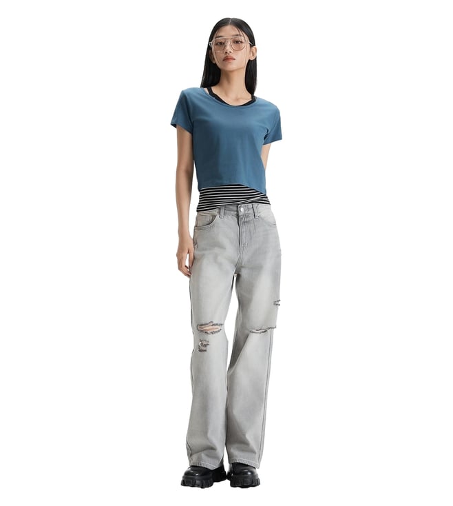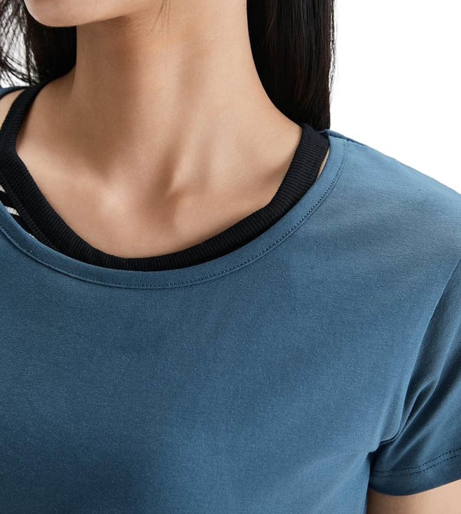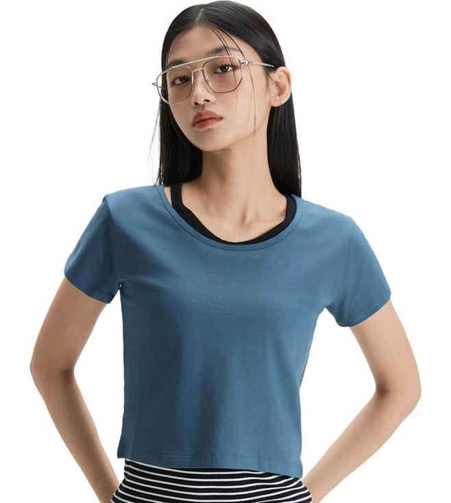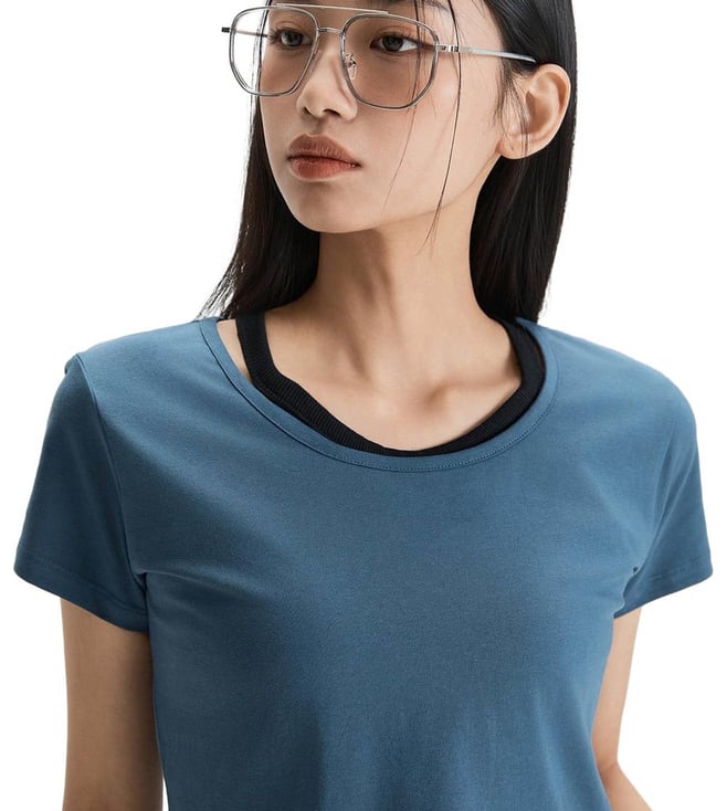 MIXXO Blue Regular Fit U Neck T-Shirt