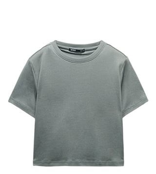MIXXO Grey Semi Crop Regular Fit T-Shirt
