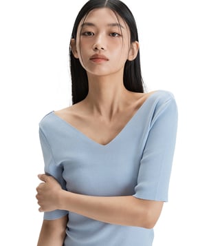 Elevate your wardrobe with the MIXXO Light Blue Front-Back Reversible Essential Top. This versatile top offers two stylish looks in one, making it a must-have for any fashion-forward individual. Crafted from high-quality materials, this top is not only comfortable to wear but also easy to style for any occasion. Whether you're dressing up for a night out or keeping it casual for a day at the office, this reversible essential top will effortlessly take you from day to night with ease. Add a pop of color and chic style to your closet with this timeless piece.