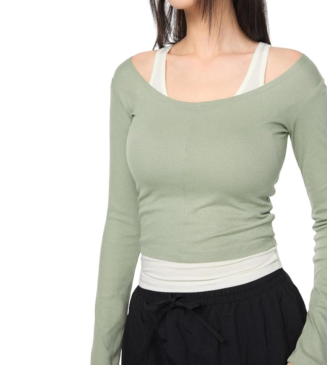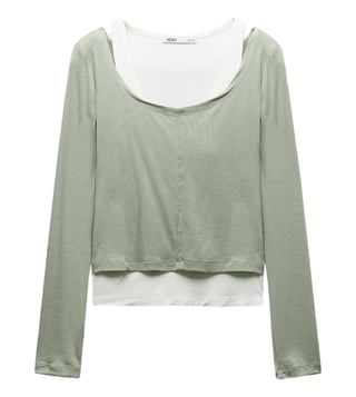 Light Khaki Layered Ribbed Regular Fit Top