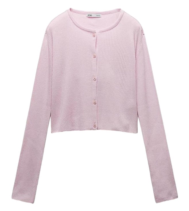 MIXXO Light Pink Essential Regular Fit Ribbed Cardigan