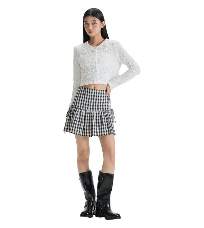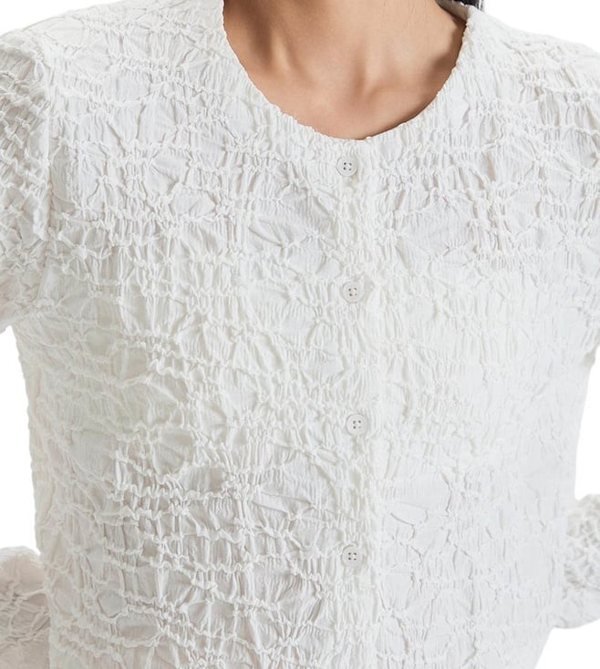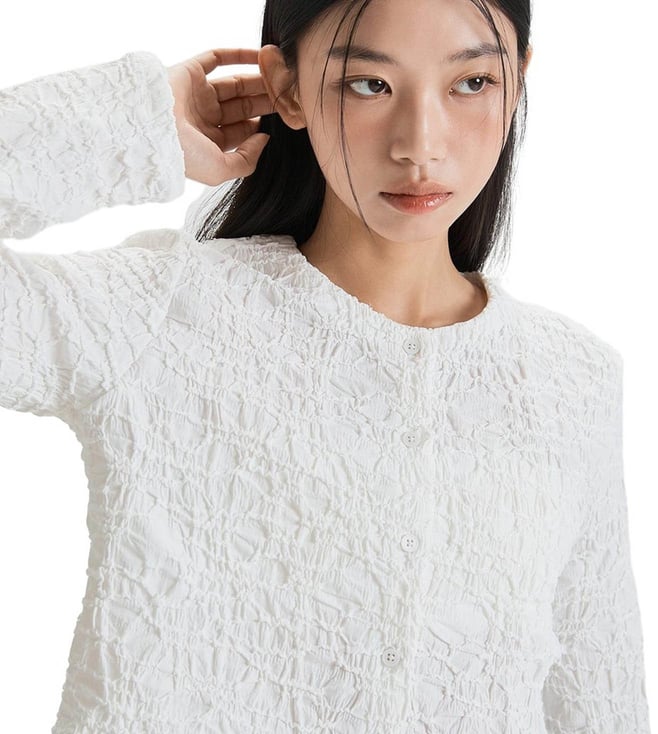 MIXXO White Embroidered Regular Fit Cardigan Blouse