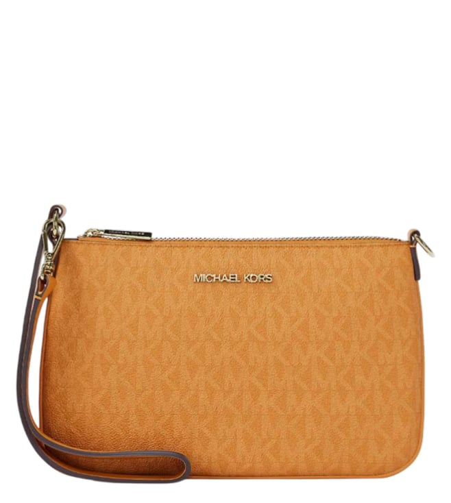 Orange Logo Printed Wave Large Shoulder Bag With Pouch