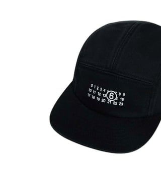 Five-panel hat made of gabardine. Featuring a contrasting color numeric logo on the front. Adjustable closure at the back. Made of 100 percent cotton. A versatile and easy-to-match accessory.