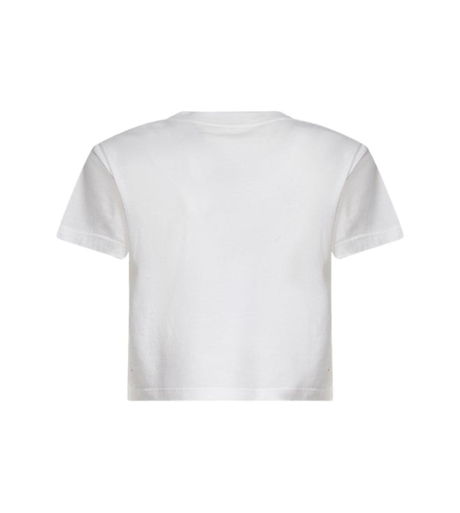 The MM6 Maison Margiela White Logo Cotton T-Shirt is a chic embodiment of minimalist elegance, tailored for the modern woman. Crafted from 100% cotton, this regular-fit tee offers unparalleled comfort and breathability. Its pristine white hue serves as a canvas for the subtle yet striking logo, adding a touch of avant-garde flair. The seamless closure ensures a smooth silhouette, making it a versatile staple for any wardrobe. Perfect for pairing with both casual and sophisticated ensembles.
