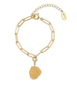Attain the zenith of eloquence by wearing this charm bracelet. Shaped meticulously using 22 kt gold-plated brass, this bracelet is sure to enhance your look with its refined finish. It is lead and nickel free. Disclaimer: Product colour may slightly vary due to photographic lighting sources. Country of Origin - India.