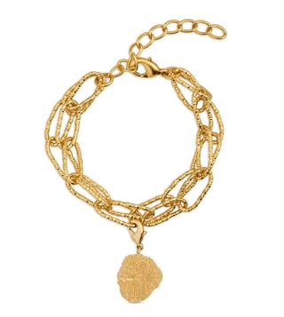 Attain the zenith of eloquence by wearing this charm bracelet. Shaped meticulously using 22 kt gold-plated brass, this bracelet is sure to enhance your look with its refined finish. It is lead and nickel free. Disclaimer: Product colour may slightly vary due to photographic lighting sources. Country of Origin - India.