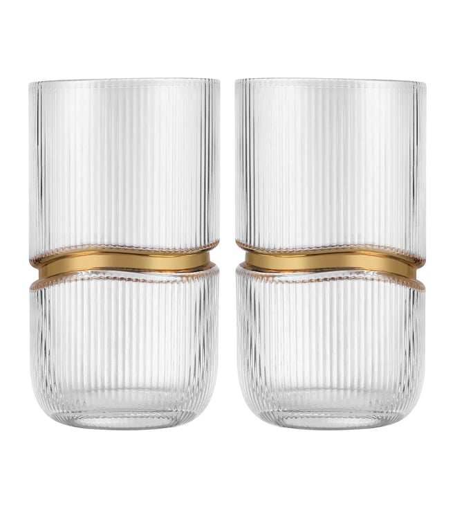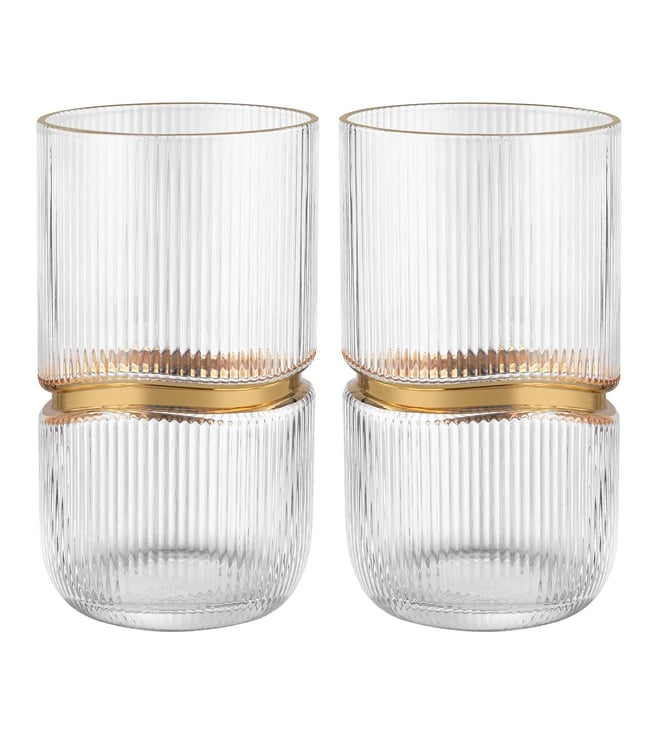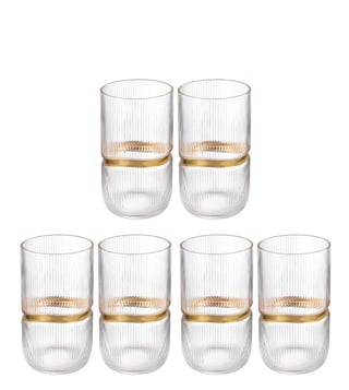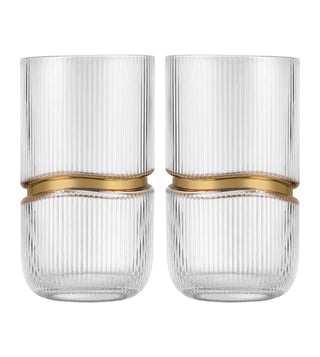 Water glasses with a gold ring, blending elegance and practicality. Perfect for elevating everyday refreshment, this set is a sophisticated addition to your glassware and a thoughtful gift choice.