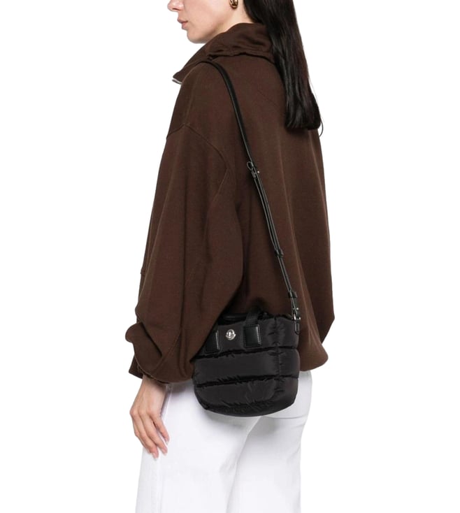Expand the collection of your accessories in a trendy way with this bag from Moncler. Its versatile design complements any outfit, making it an essential for basic and casual activities. Black quilted designtop handleadjustable straplogo plaquezip closure100 percent polyamide Products purchased from Darveys are supported exclusively by the warranty/exchange policies of Darveys and its partner boutiques. Brand owners and their channel partners are not responsible for exchange/warranty services for items purchased through Darveys.