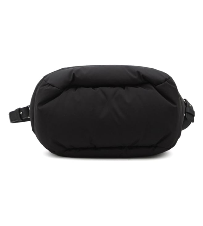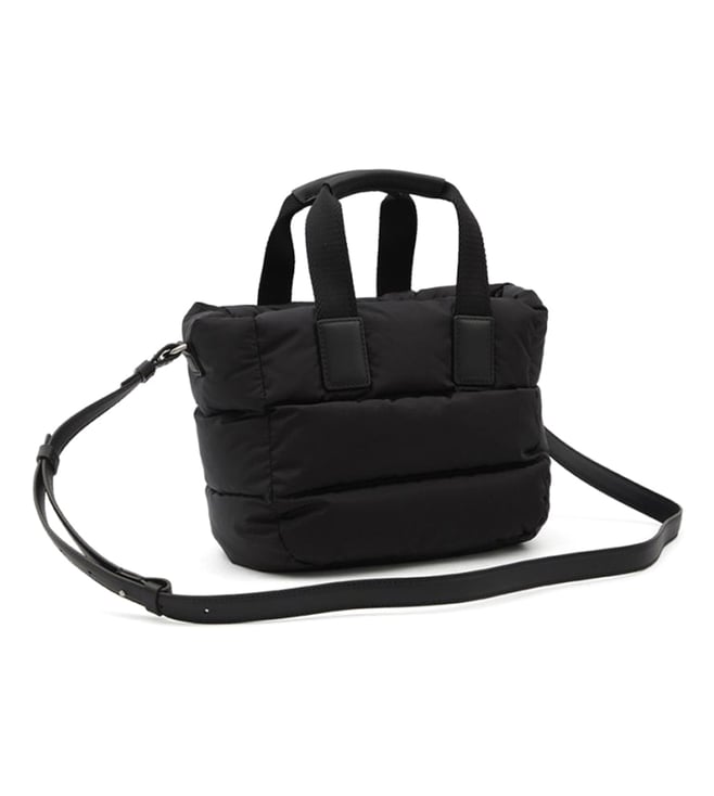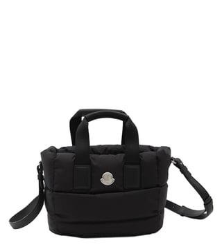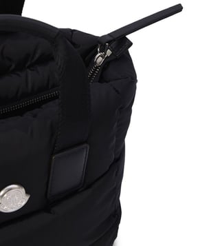 Black caradoc tote bag in black water-repellent padded nylon. It features ribbon handles with leather grips, a silver metal logo on the front, zip closure, an adjustable and removable leather shoulder strap, a single internal compartment, and an internal slip pocket. Composition : 100 percent polyamide Products purchased from Darveys are supported exclusively by the warranty/exchange policies of Darveys and its partner boutiques. Brand owners and their channel partners are not responsible for exchange/warranty services for items purchased through Darveys.