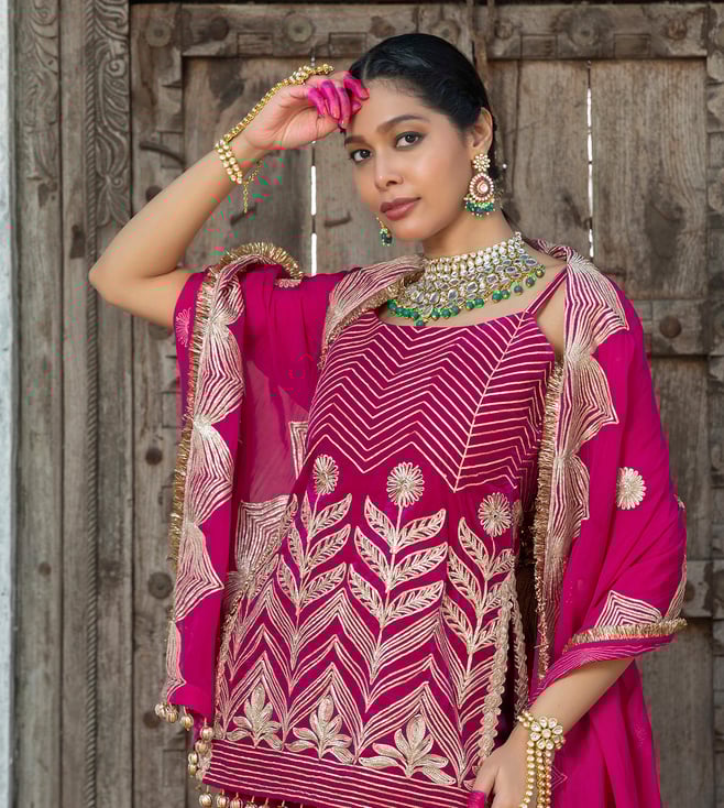 Monk and Mei Fuschia Pink Velvet Fitted Kurta Set