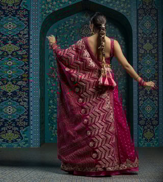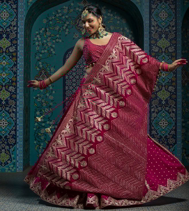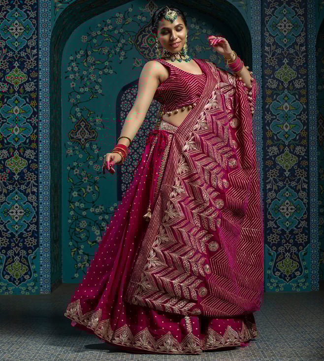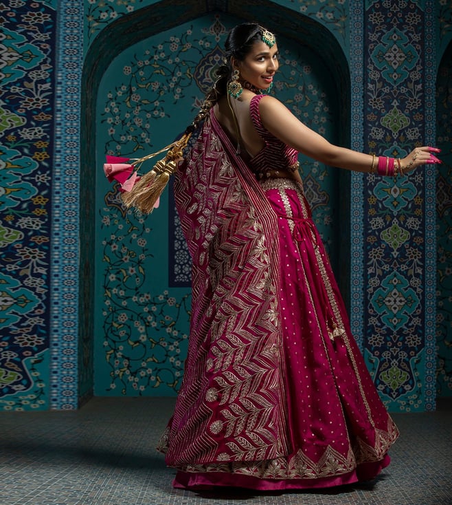 Monk and Mei Fuschia Pink Velvet Fitted Lehenga Set