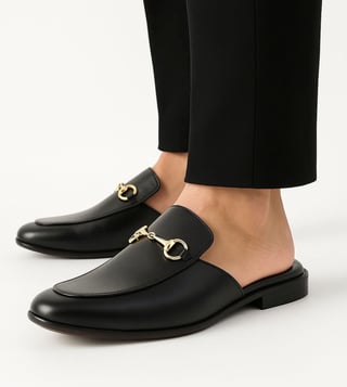 Step into power with the Black Horsebit Monk Mules. With a sleek silhouette and gold-tone horsebit detail, these mules balance old-world charm and modern minimalism. Designed for effortless luxury, they are your go-to slip-ons for evenings, work calls, and everything in between.