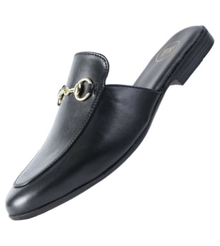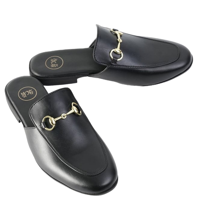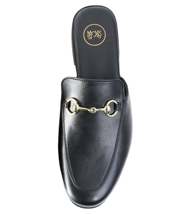 Monkstory Men's Horsebit Classic Black Mules