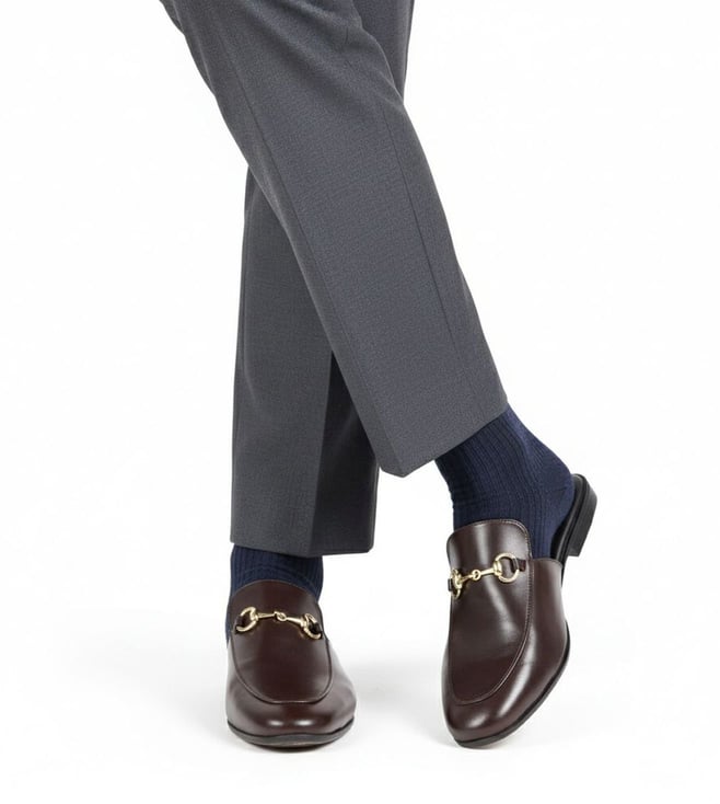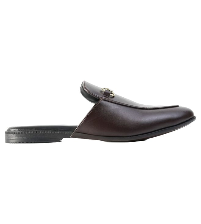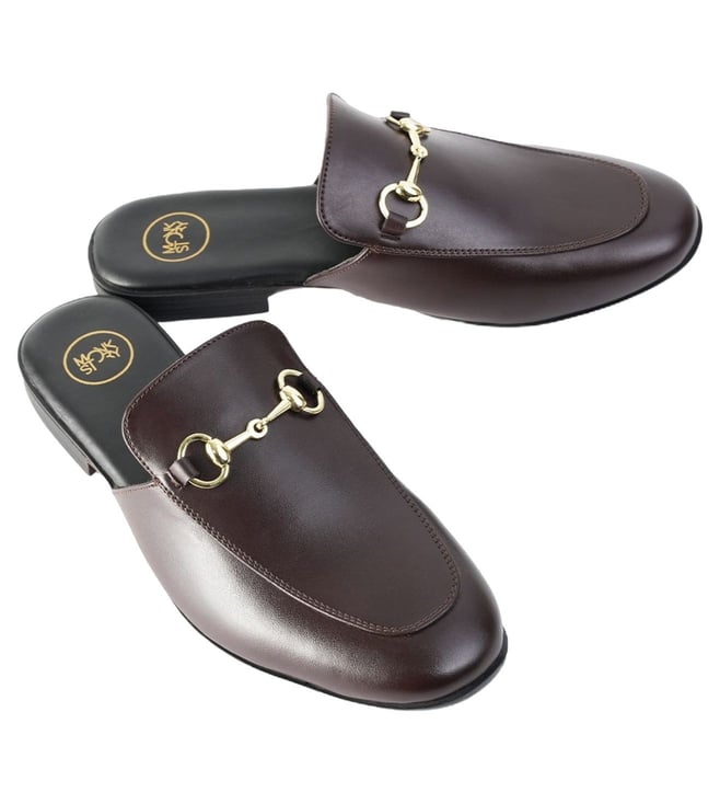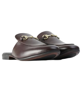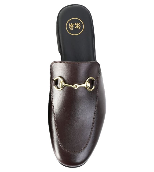 Classy meets contemporary in the Brown Horsebit Monk Mules. With a deep chocolate finish and elegant gold horsebit, this pair exudes understated richness perfect for dressy and off-duty looks alike. It will keep your feet relaxed throughout the day.
