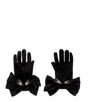 Monnalisa Girls Black Velvet Gloves-6 Year