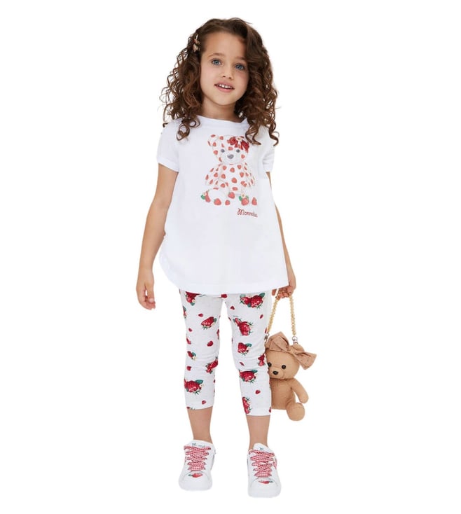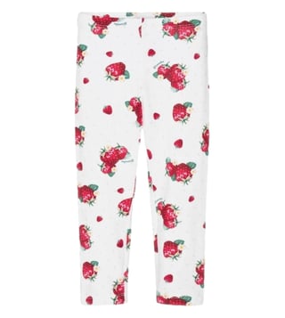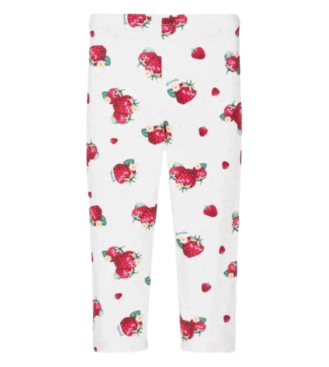Monnalisa Girls Ivory Cotton Strawberry Leggings