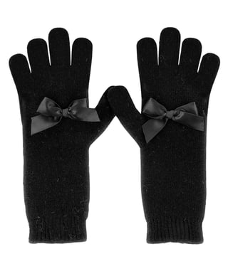 Elegant black gloves detailed with Monnalisa¿s signature bow patch a chic winter essential with a touch of playful charm. Crafted from soft, high-quality fabric, these elegant gloves feature a refined textured finish and a delicate bow detail for a feminine touch. Warm, comfortable, and stylish, they perfectly combine practicality with Monnalisa¿s signature sophistication - an essential accessory for chilly days.
