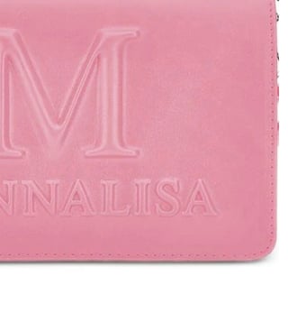 Stylish and playful, this Pink Monnalisa handbag features a bold logo print, perfect for adding a designer touch to her outfit.