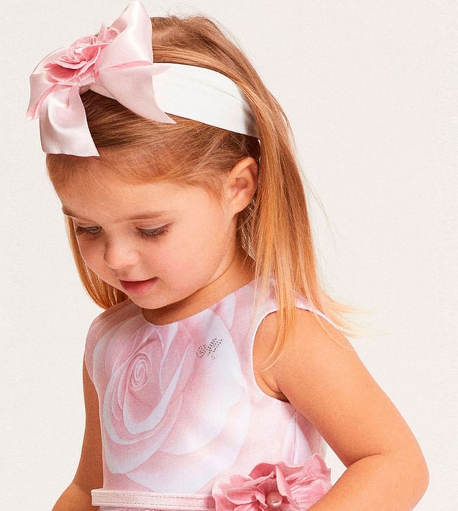 A cute pink and white headband for girls, decorated with a sweet bow patch. Soft, stylish, and comfortable - this Monnalisa accessory adds a playful finishing touch to any outfit.