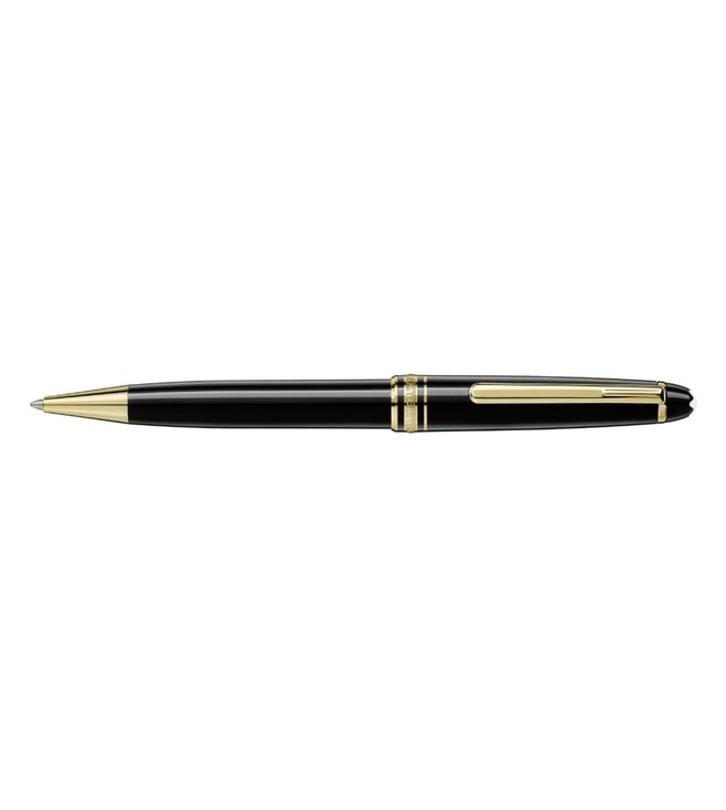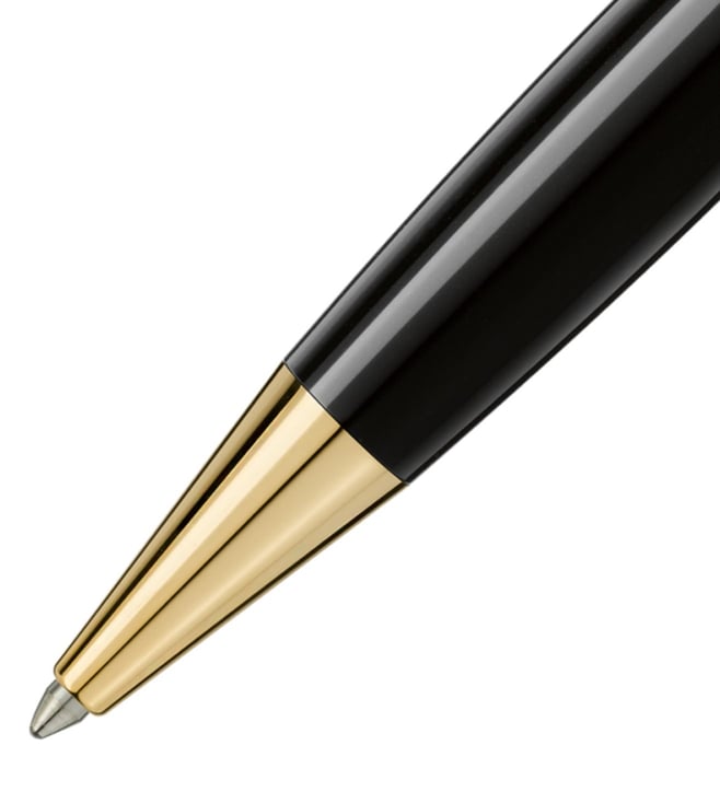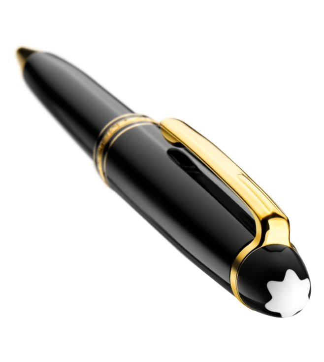 The Meisterstuck Classique in deep black precious resin with gold-coated details and surmounted by the white star emblem evolves into a distinctive design icon. The body and cap of this elegant rollerball, which has become a true luxury icon far beyond writing culture. Gleaming yellow gold coated fittings and the white star emblem surmount the refined aesthetics.