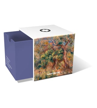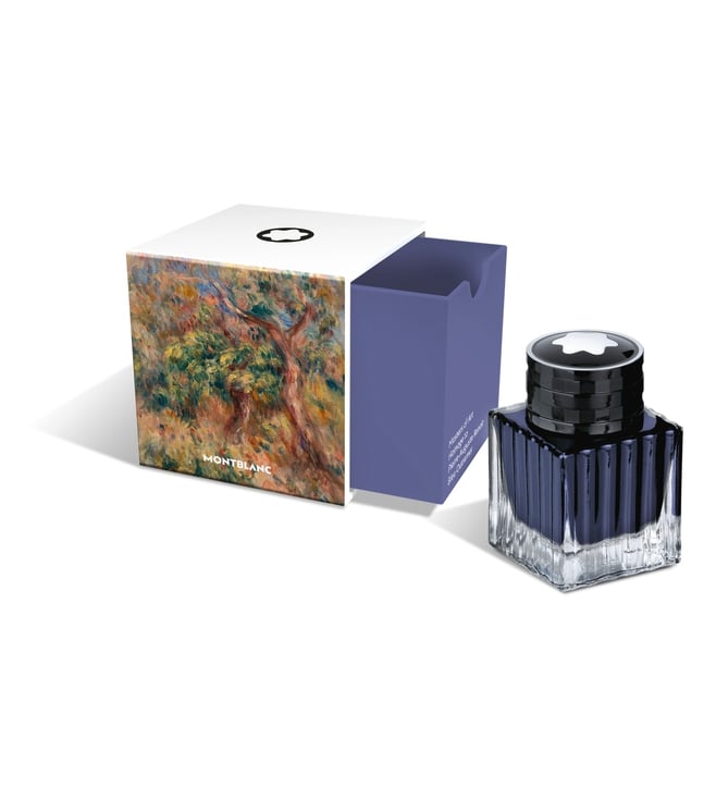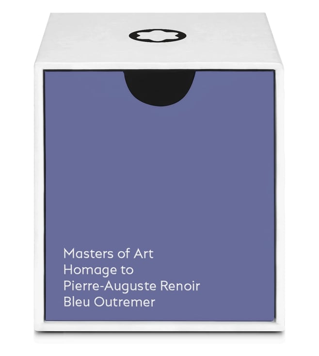 Montblanc ink bottle, masters of art homage to pierre-auguste renoir, bleu outremer (ultramarine blue) - 50ml montblanc special edition ink bottles come in square packaging that evokes the concepts and themes of each collection, making them valuable collectible items for montblanc enthusiasts.