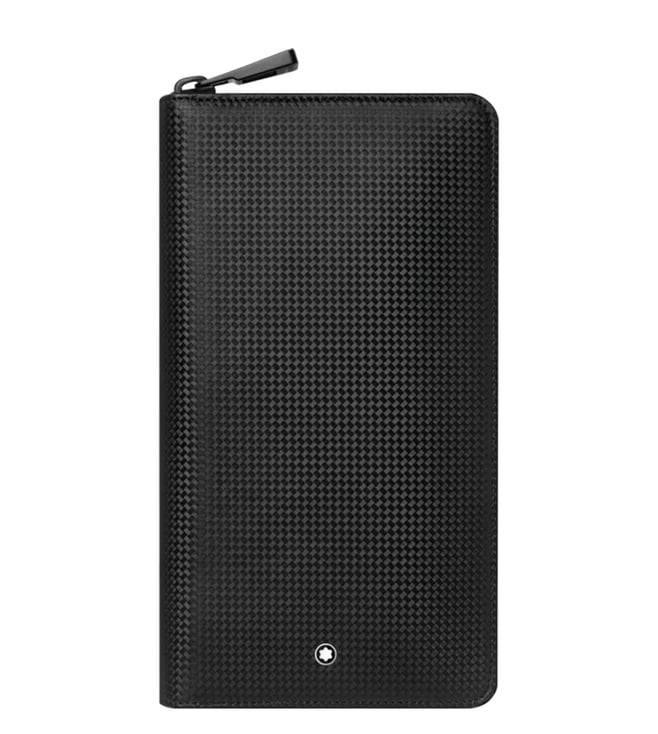 With its bold black color, plain leather inside and leather with carbon-fiber print motif outside, the travel wallet is the perfect companion for young urban travellers to keep their travel essentials. It features a compartment for bills, pocket for cell phone, 11 slots for credit cards, large pocket for flight tickets, additional pocket and pen loop. The Montblanc shield technology, RFID blocking lining completes the style.
