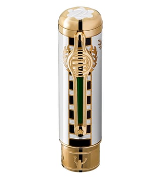 The precious lacquer on the cap represents this distinct pattern while the pattern on the gold-coated barrel resembles boxing tapes athletes use for wrapping their hands. The gold-coated butterfly on the cap is inspired by this typical fighting style - Float like a Butterfly, sting like a bee. The pointed cone takes up that notion and the four lacquered lines resemble the ropes of a boxing ring. The inscriptions on the cone refer to Ali¿s victory at the 1974 fight nicknamed Rumble in the Jungle, when Ali won his second heavyweight world championship.