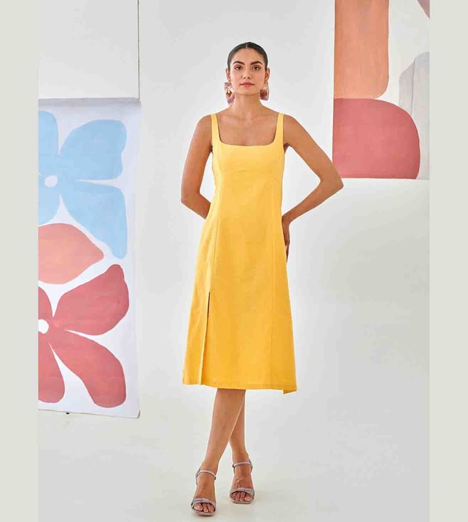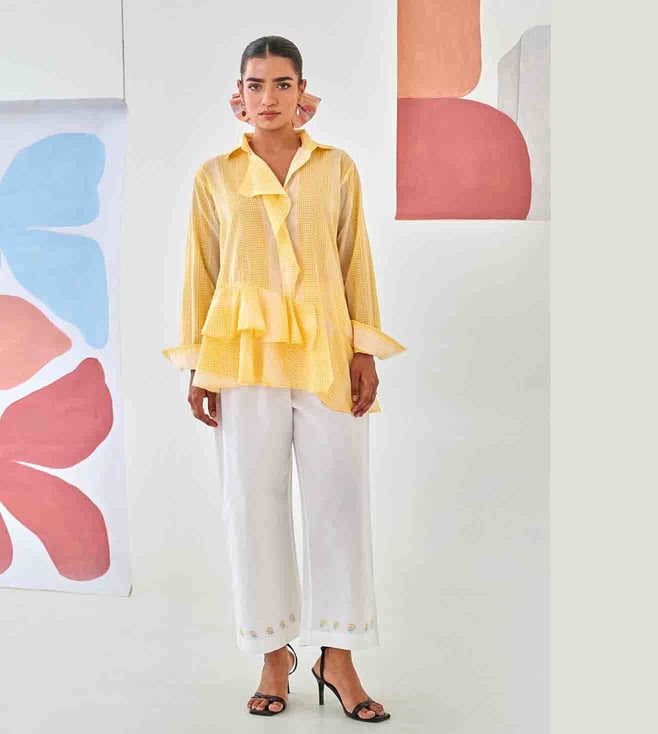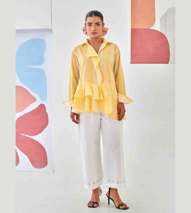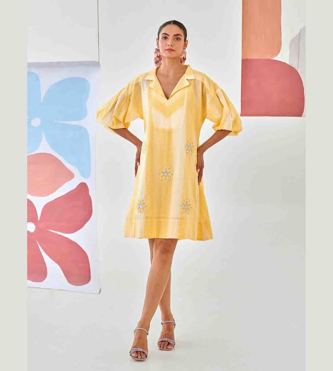 Yellow Cotton Relaxed Geometric Casual Shirt