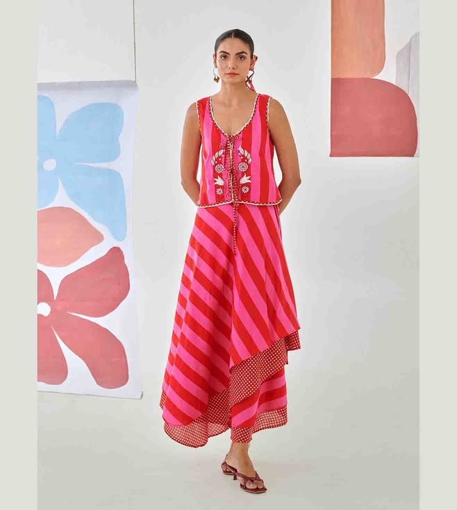 Pink Cotton Comfortable Embroidery Co-Ord Set