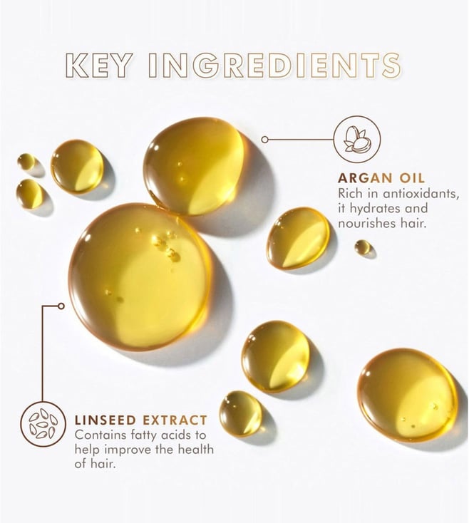 Argan Oil: Extremely rich in tocopherols (Vitamin E),essential fatty acids and antioxidants that hydrate and nourish the hair. Linseed Extract: Derived from flaxseed,a good source of alpha linolenic acid also an essential fatty acid that helps improve the health of hair.