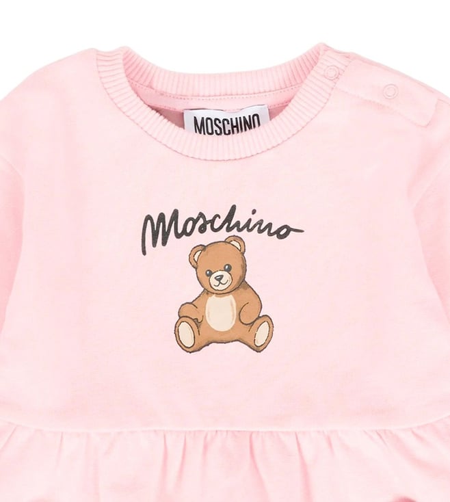 Moschino Baby Girls Pink Teddy Bear Logo Comfort Fit Dress