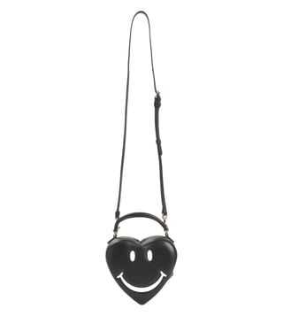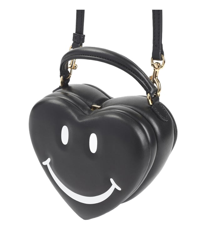 Black Heart Crossbody Bag, magnetic closure, 1 compartment, white contrasting smile on the front, top handle, magnetic fastening, detachable and adjustable shoulder strap. With its timeless design and practical features, this bag is a must-have accessory for the modern woman on-the-go.
