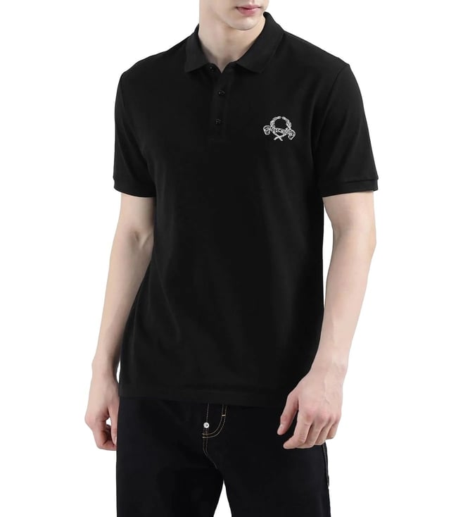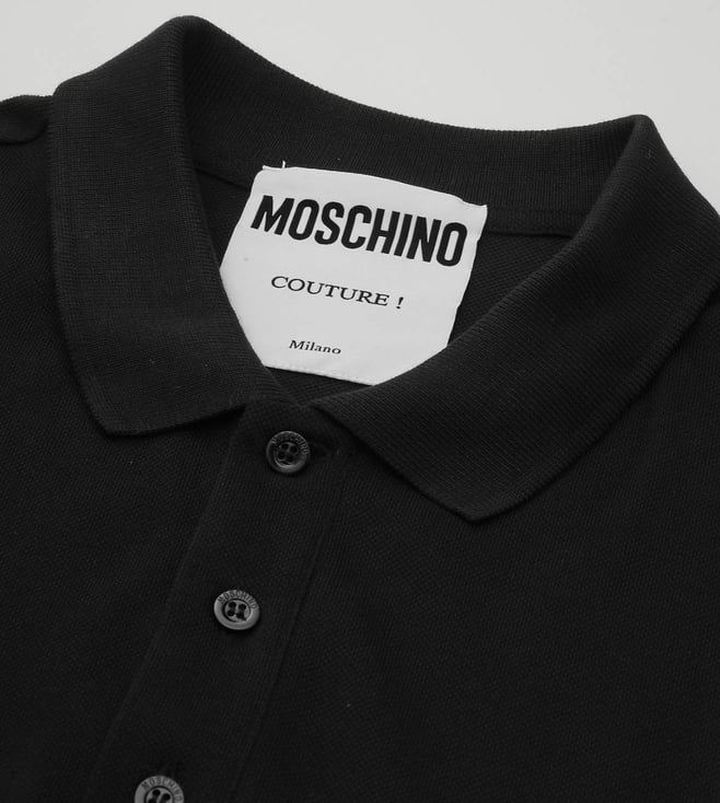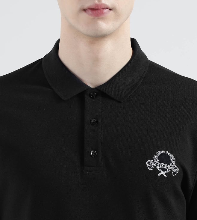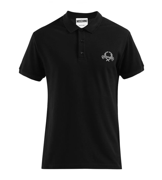 Moschino Couture Men Black Small Laurel Moschino Chest Embroidered Polo T-Shirt