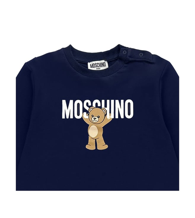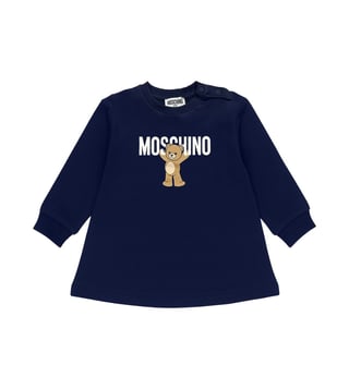 This navy blue dress from Moschino features the iconic Teddy Bear logo on the front, blending playful charm with everyday comfort. Made from soft cotton, its perfect for stylish casual wear.